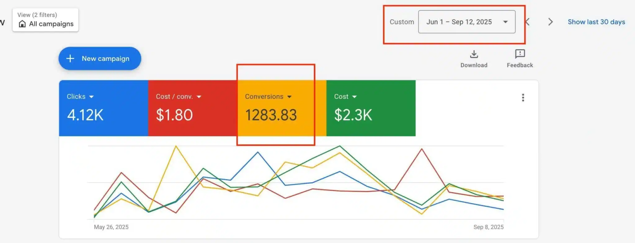 • Budget efficiency: 1,284 leads from $2.3K spend.