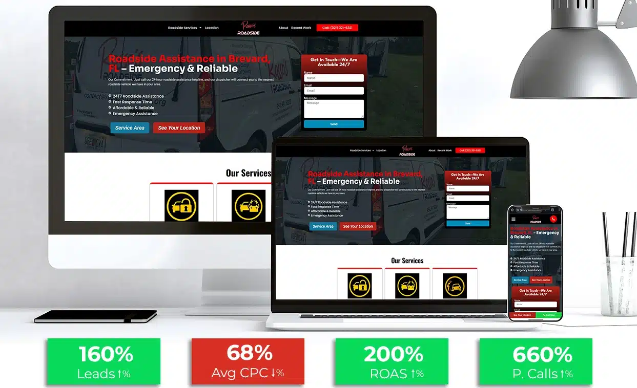 Rossos Roadside is a local roadside assistance provider helping drivers with towing, flat tires, battery jumps, and emergency services. Operating in a highly competitive space, they needed to capture customers at the exact moment of need. That’s why Google Ads was chosen—to reach stranded drivers searching online for immediate help.