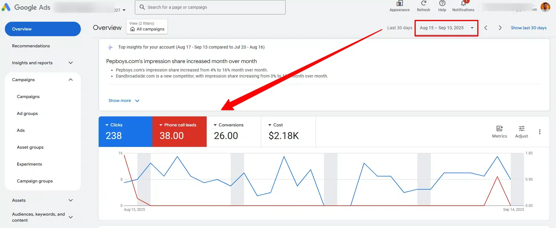Rossos Roadside received 38 direct calls in just one month. With an average roadside service value of $150–$250, even converting 20 calls into jobs generated ~$4,000 revenue from only $2,180 spend. That’s nearly 2x ROI in a highly competitive emergency niche.